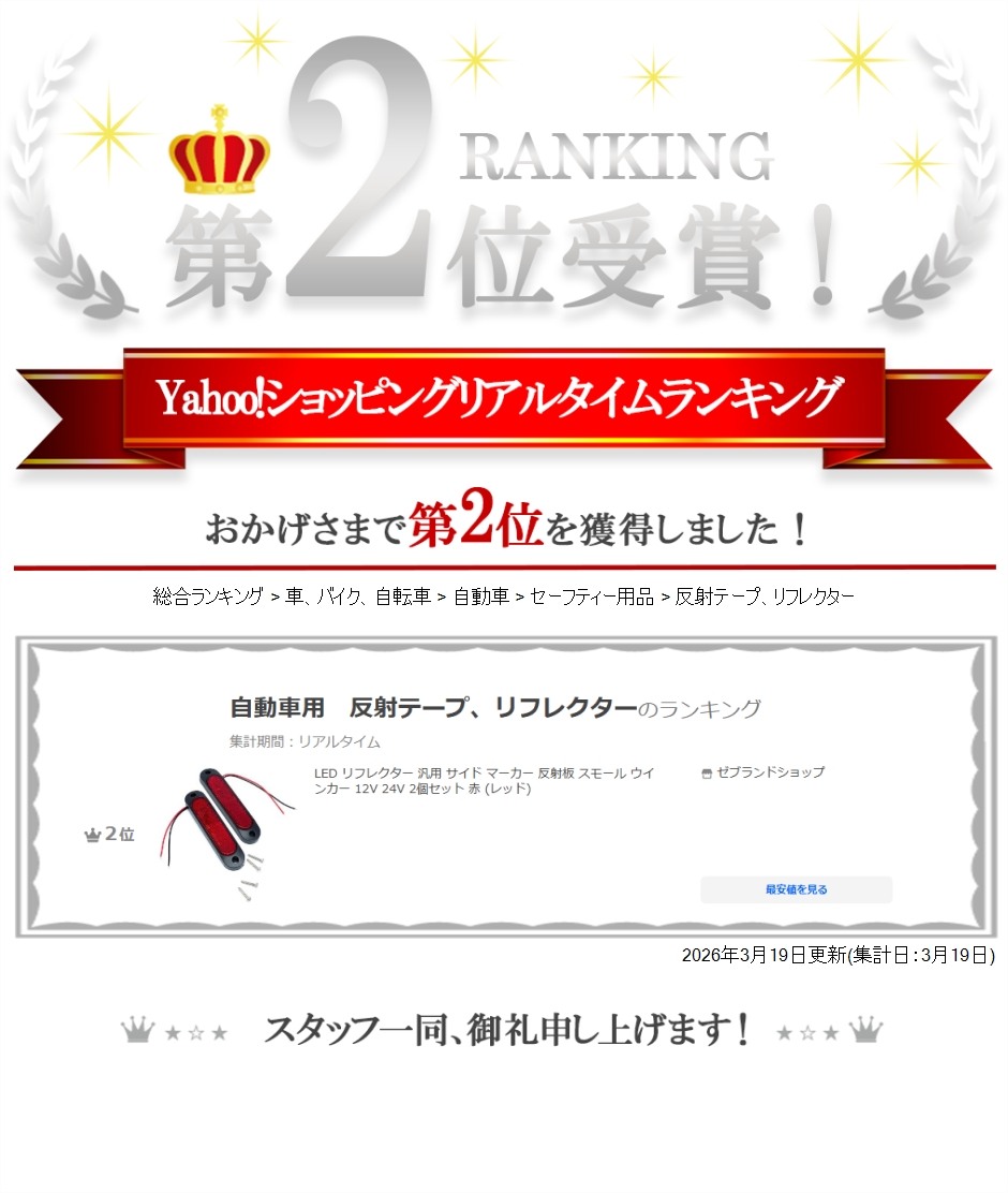 | 商品名 | LED リフレクター 汎用 サイド マーカー 反射板 スモール ウインカー 12V 24V 2個セット 赤 レッド |
