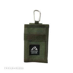 スマートキーケース カラビナ付き 外側クリアポケット オリーブカーキ 鍵入れ 内側キーリング PROUD GEAR プラウドギア PGR-012