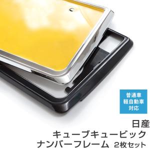 【ナンバーフレーム】 日産 キューブキュービック 2枚セット 汎用 軽自動車 普通車 前後セット メッキシルバー ブラック ナンバー枠 カスタム