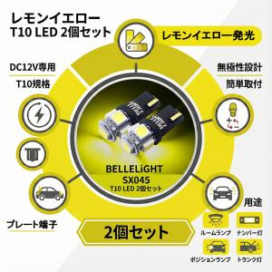 レモンイエロー T10 LED 2個セット 黄色 ポジション球 ルームランプ イエロー 12V 無極性 ベルライト SX045