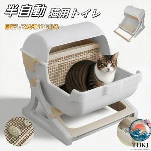 半自動 猫トイレ半自動猫用トイレ 回転して処理が出来る ペットトイレ 猫 ねこ THKJ ネコ キャットトイレ 子猫 成猫 ネコ用品 掃除速い 組み立て簡単 固まる猫