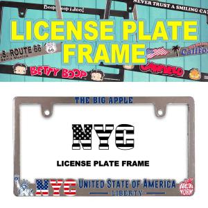 NYC LICENSE PLATE FRAME Lic-Flame-THE BIG APPLE NYC UNITED STATE OF AMERICA LIBERTY ライセンス プレート フレーム 日本車対応サイズ