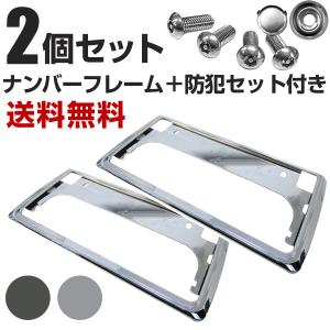 【新基準対応】 2枚セット ナンバーフレーム セキュリティボルト ボルトキャップ付き 黒 銀 ブラック シルバーメッキ ナンバープレート 軽自動車 前後セット 枠