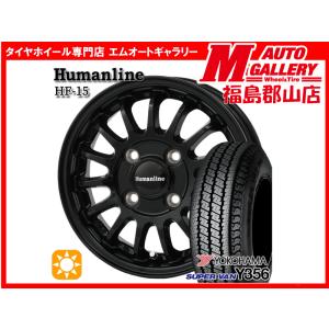 郡山 新品 サマータイヤホイールセット1台分 ヒューマンラインHF15 12x3.5J+42 4H100 BK YH Y356 145/80R12 80/78N 軽トラ