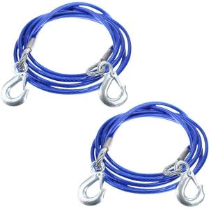 牽引ロープ 車 緊急ロープ フック付 スチール製ワイヤー 5トン 雪道 山道 事故 故障 自然災害 (ブルー, 4m x 10mm)