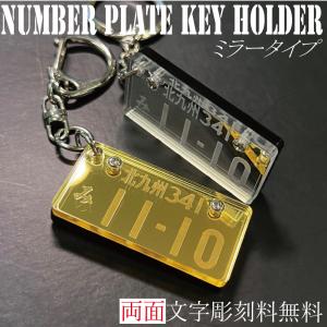 ミラー調 ナンバープレート キーホルダー ミラーゴールド シルバー 両面彫刻 プレゼント お祝い 誕生日 記念 高級感 おしゃれ メッセージ刻印