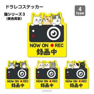猫シリーズ3(黄色背景)ドラレコ ドライブレコーダーステッカー シール 1枚