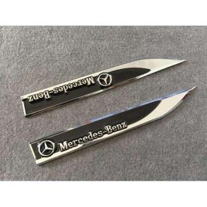 送料無料 メルセデスベンツ用★2枚セット カーステッカー エンブレム ブラック 車体サイドスカート 金属製 フェンダーバッジ シール 強粘着力
