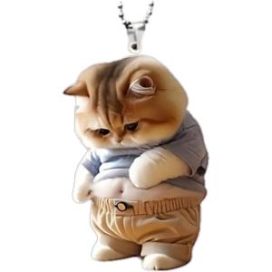 ぽっちゃり キーホルダー 太った 2D アクリル 車 カー アクセサリー かわいい バックミラー 鍵 キーチェーン (猫, 約8cm)