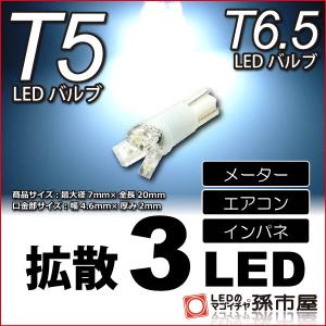 T5 LED T6.5 LED 拡散3LED 白 ホワイト / メーター球 エアコン インバネ メーターランプ / 孫市屋
