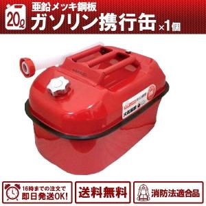 4/10頃入荷予定 ガソリン携行缶 内容量: 20L 車載用に最適サイズ 消防法適合品 横型タイプ 亜鉛メッキ鋼板(防サビ) 送料無料