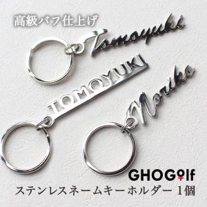名前 キーホルダー 【名入れ ステンレスネームキーホルダー】銀婚式 ネームプレート プレゼント 誕生日 退職祝い 名札 ゴルフバッグ キャディバッグ GHOGolf