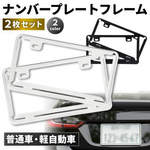 ナンバーフレーム フレーム 軽自動車 ナンバーステー 普通車 ナンバープレートフレーム 黒 ブラック シルバー 2枚セット 簡単